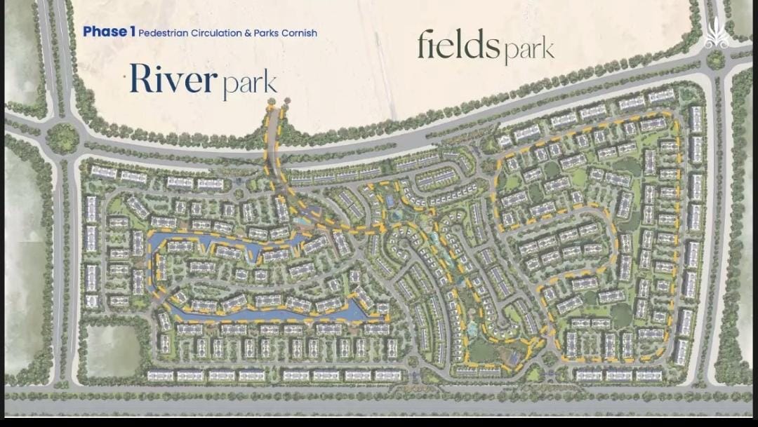 The building distances range from 10 to 70 meters, with River Park spanning 8 Fadden and offering activities like kayaking, a training center, restaurants, drawing spaces, and yoga. The water distances vary from 7 to 57 meters.Aliva – Mostakabal City